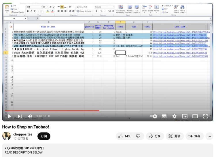 YouTube 最早一个“淘宝购物教程”;图源:chopposites / YouTube