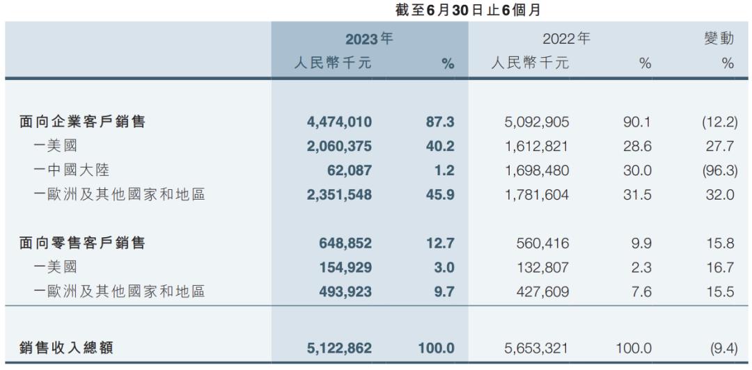 财报数据显示,今年上半年,思摩尔国际来自美国市场的营收占比已由去年同期28.6%增加至40.2%,来自欧洲及其他市场营收占比也提升至45.9%,但来自中国大陆市场的销售收入则大幅下滑96.3%,营收占比更是从去年同期的30%大降至仅1.2%。