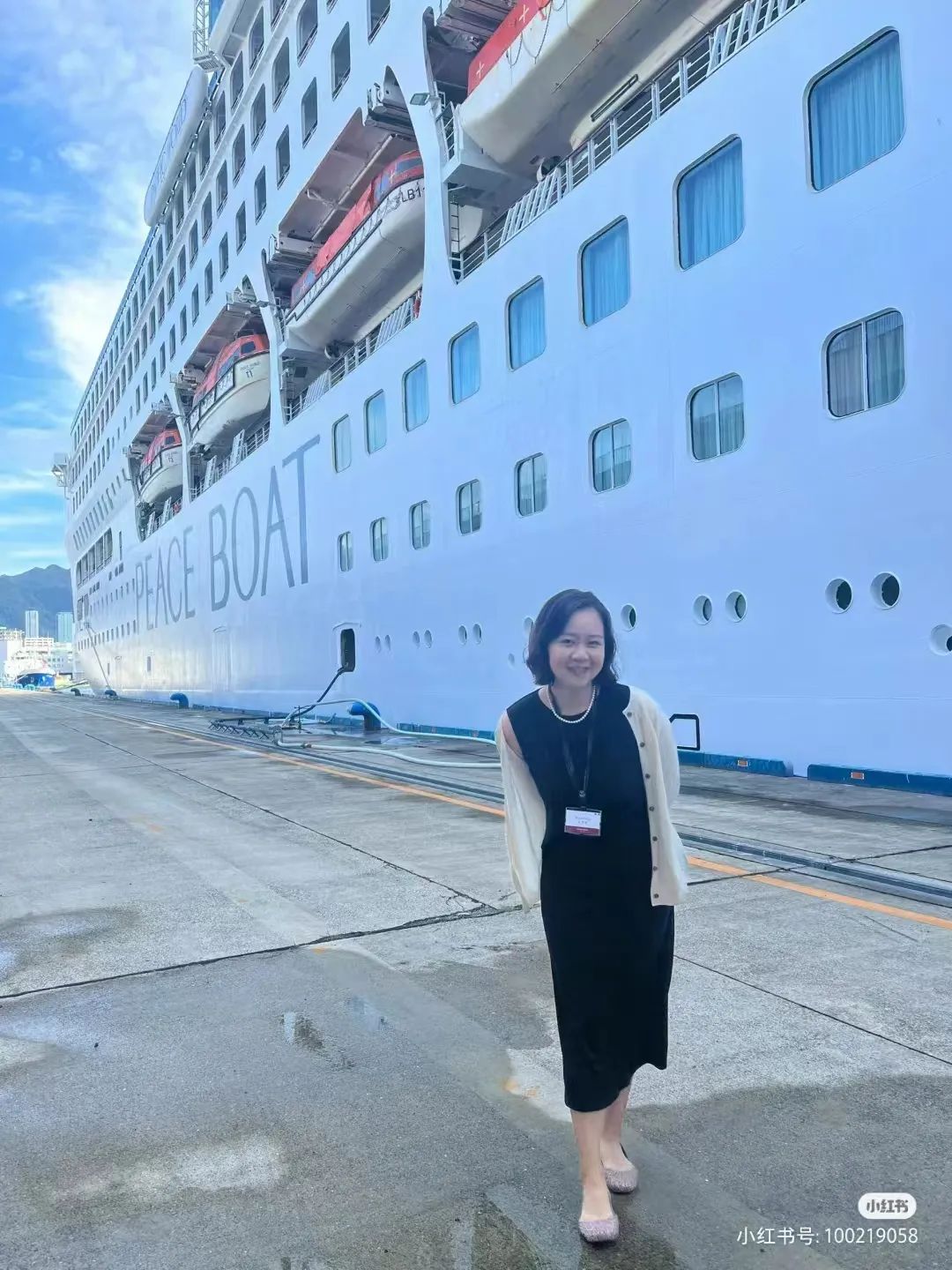 YIYI便是这样一名“勇敢者”。她是Peace Boat的老乘客,2023年夏天,时隔6年,她第二次以翻译志愿者的身份踏上这艘巨大的轮船,进行了为期100天的环游地球之旅。