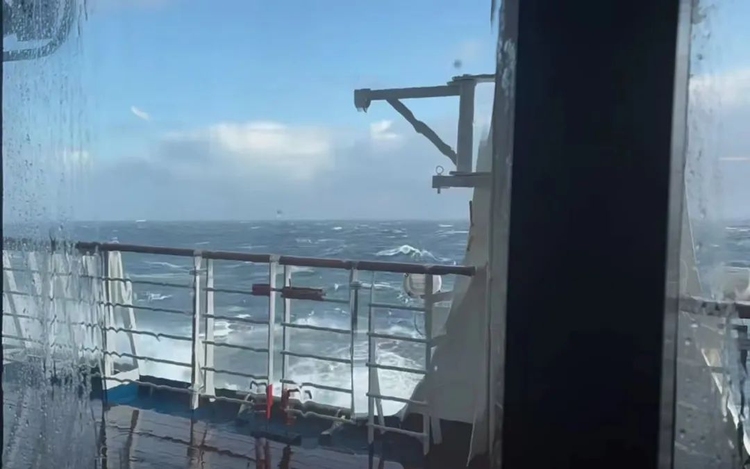 行程快一半,当游轮从迈阿密向北航行的时候,整艘船开始经常摇晃,到了加拿大跨大西洋去冰岛的路上,船身摇晃得最厉害,“窗外的海洋翻着白浪,一会儿高一会儿低,风带着水雾,从船头向船尾不停奔跑”,靠近船头的位置,还能一直听到“哐当”的冲击声,那是风浪冲击船头的巨响。露天甲板已经关闭,电梯也都关了,此时连吃饭装汤都成了问题,要是有浪打过来,人连站都站不稳。