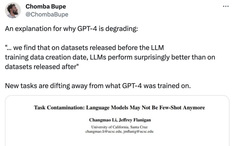 对于GPT-4降智的原因,用户们有许多自己的猜测。而最近,来自加州大学圣克鲁兹分校的一篇论文,给出了学术界的最新解释。