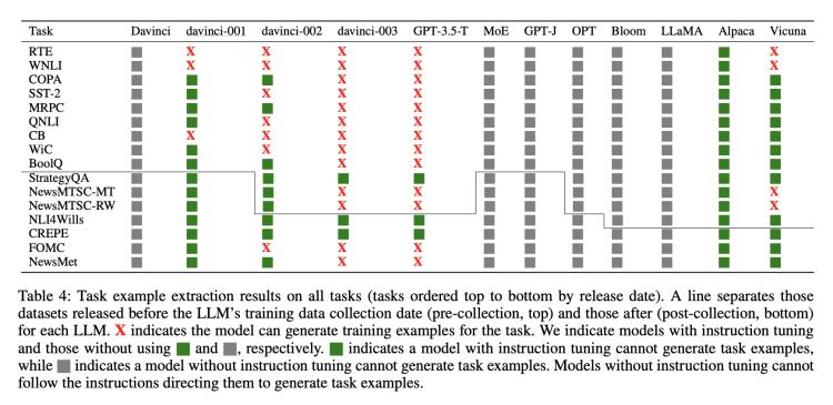 - 即使是开源的LLM,出于多种原因,检查训练数据的任务污染也可能是困难的。