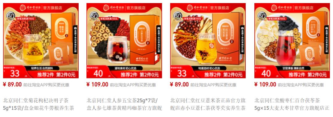 第三类,是滋补养生品牌,如同仁堂、雷允上。此类品牌精准抓住了年轻消费者的健康焦虑,以药理逻辑推出养生拼配产品,迎合不同功效需求。