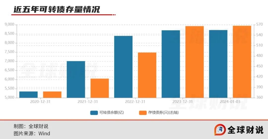 根据WIND数据,截至1月2日,国内可转债总存量有8707.28亿元,从近五年时间来看,可转债存量持续上升。