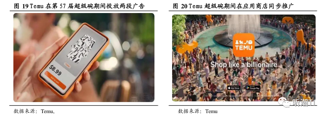 其中,去年2月13日,Temu购买了美国“超级碗”(NFL职业橄榄球联盟总决赛)的广告位,连续两遍播放了其广告曲,市场60s,据说Temu为此投入了超过1400万美元。近段时间也有媒体报道,有知情人士称,Temu已承诺,将在今年2月11日举行的超级碗比赛期间购买多个广告单元。