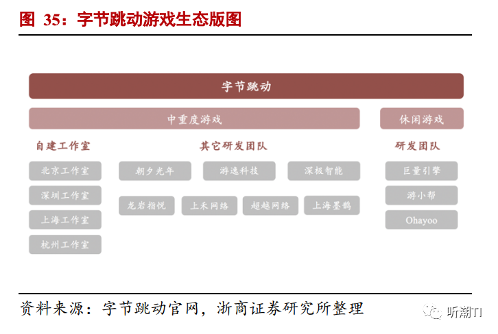 字节跳动此前在游戏赛道大力布局,图/浙商证券