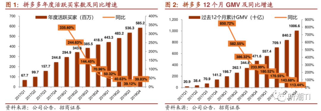 拼多多年度活跃买家及GMV增速变化,图/招商证券