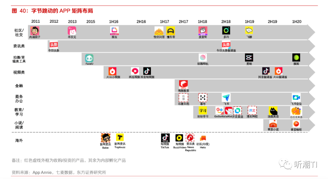 这一年里,抖音的DAU反超了快手,成为最大的短视频平台,它进而加速了在电商和广告业务上的商业化布局。同一时期里,字节开始将触角伸向游戏、教育、社交、金融、企业服务等多个领域。