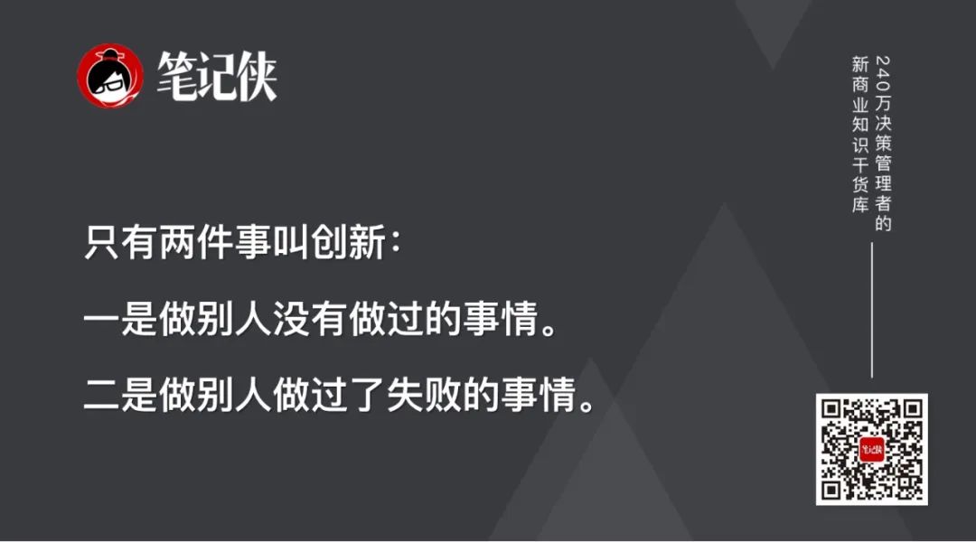 9.我曾经研究过什么叫创新,包括怎么创新。只有两件事叫创新:一是做别人没有做过的事情。二是做别人做过了失败的事情。