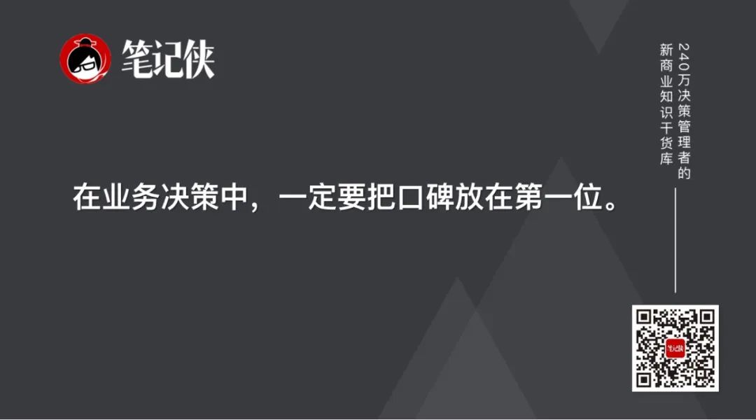 所以,我们在业务决策中,一定要把口碑放在第一位。甚至要做好心理准备,部分产品只要口碑出众,哪怕销量有限甚至亏损也在所不惜。