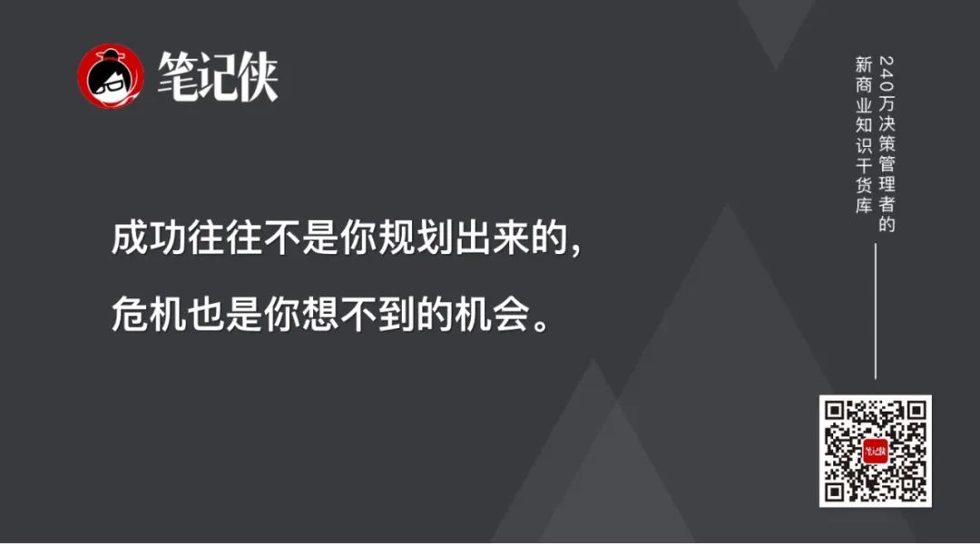 7.成功往往不是你规划出来的,危机也是你想不到的机会,当你遇到一个巨大危机的时候,你用积极的心态去面对、去解决,可能会创造新的机会。