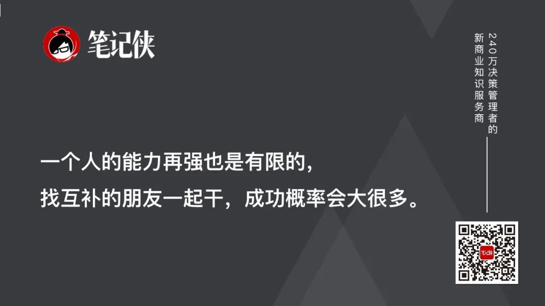 7.一个人的能力再强也是有限的,找互补的朋友一起干,成功概率会大很多。