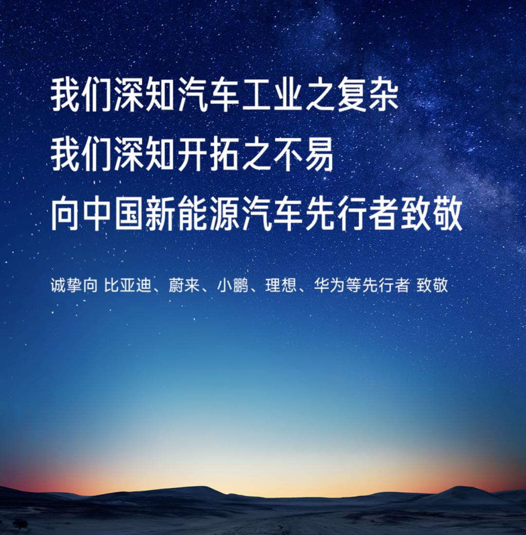 或许也正是由于这几年通过亲自造车以及投资入股的方式,见识到了汽车行业中庞大、复杂的产业链条的完整一面,雷军在召开小米汽车科技发布会的前夕,通过微博和包下广告牌的方式多次向同为新势力的前辈们致敬。