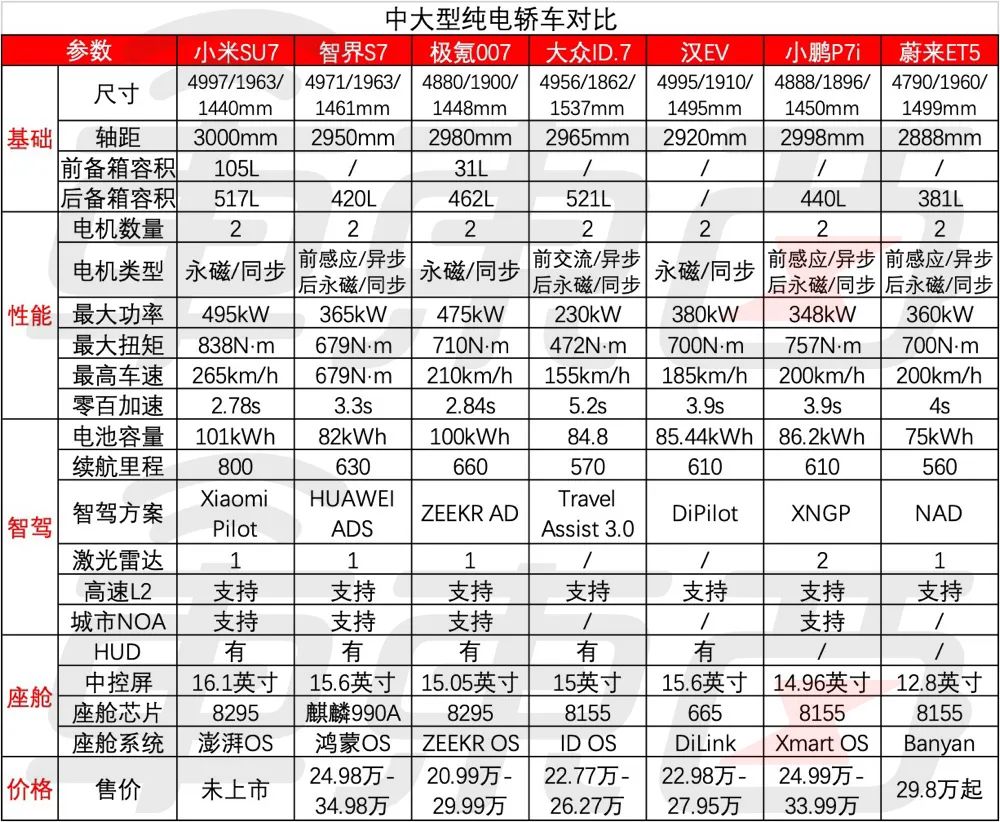 无论是2023年末发布的小米SU7、智界S7、极氪007,还是广州车展发布的大众ID.7,都可以说是各主流领域加入中型纯电轿车战斗的代表。