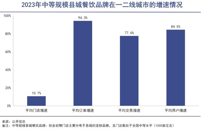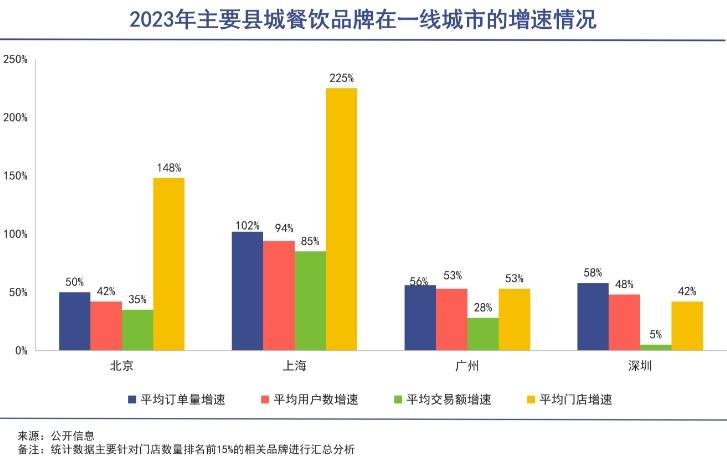 美团的数据显示,2023年1月至11月以来,闯入一线城市的“县城头部餐饮品牌”平均增速成绩亮眼,订单和用户数平均增速都超过了50%。