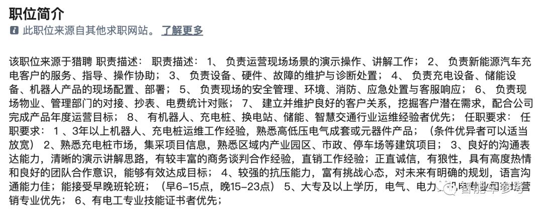 并且这些岗位均提出,求职者必须拥有3年以上机器人、充电桩、电气工程等相关经验。