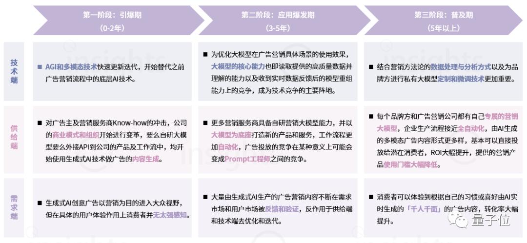量子位智库对AIGC广告营销未来发展进行预测,可分为三个阶段——