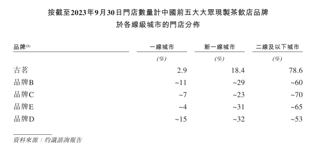 此外,在这9001家门店中,来自二线城市及以下的门店共占门店总数的79%,GMV达到了147亿元。另外,古茗还有38%的门店分布在远离市中心的乡镇。根据灼识咨询报告显示,上述两个比例在国内前五大大众现制茶店品牌中均为最高。