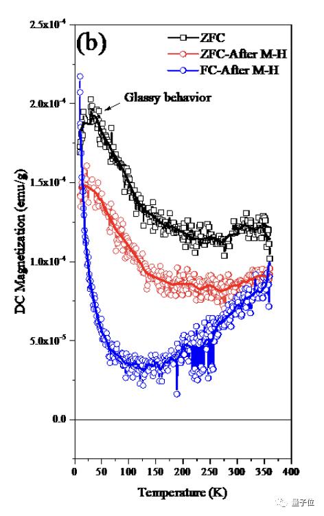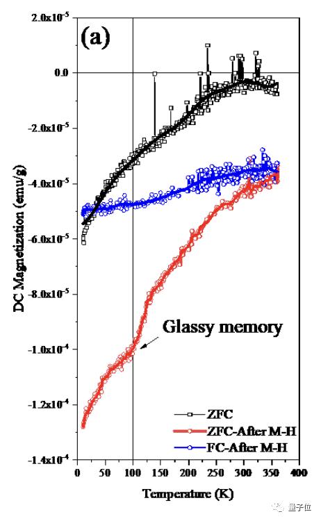 而后在冷却过程中出现了一种玻璃态记忆效应(100K左右的拐点)。