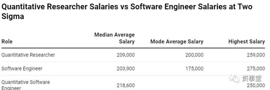 以Two Sigma为例,最新数据显示其软件工程师平均年薪为17.5万美元,最高可达27.5万美元,均比全美行业平均年薪要高。