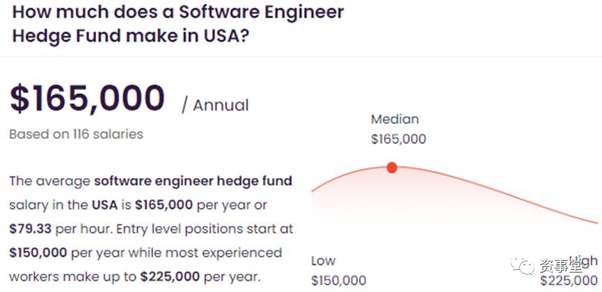 一家招聘平台最新显示:美国对冲基金的软件工程师平均薪酬为16.5万美元/年,最高年薪可触及22.5万美元。