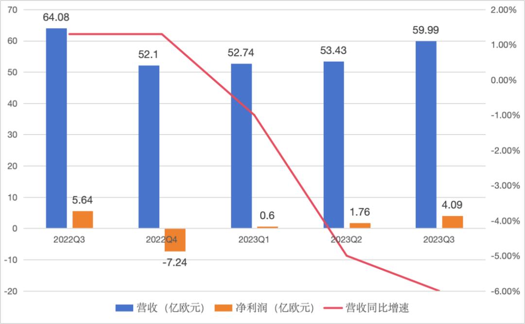 资料来源:阿迪达斯2023年前三季度业绩表现,36氪制图