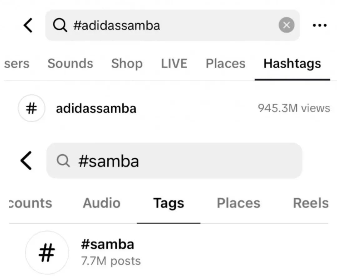 在TikTok上,#adidassamba的观看次数已经超过9.4亿次,#samba话题在Instagram上的提及次数高达770万次。