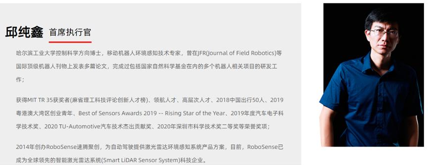 而这只超级独角兽的掌舵者,是来自哈尔滨工业大学的博士邱纯鑫。出生于潮汕,他于2014年在导师朱晓蕊教授的支持下,在深圳南山区正式创立速腾聚创。一路走来,速腾聚创集结了一支庞大的投资人队伍——9年获得多达14轮融资,阵容蔚为壮观。