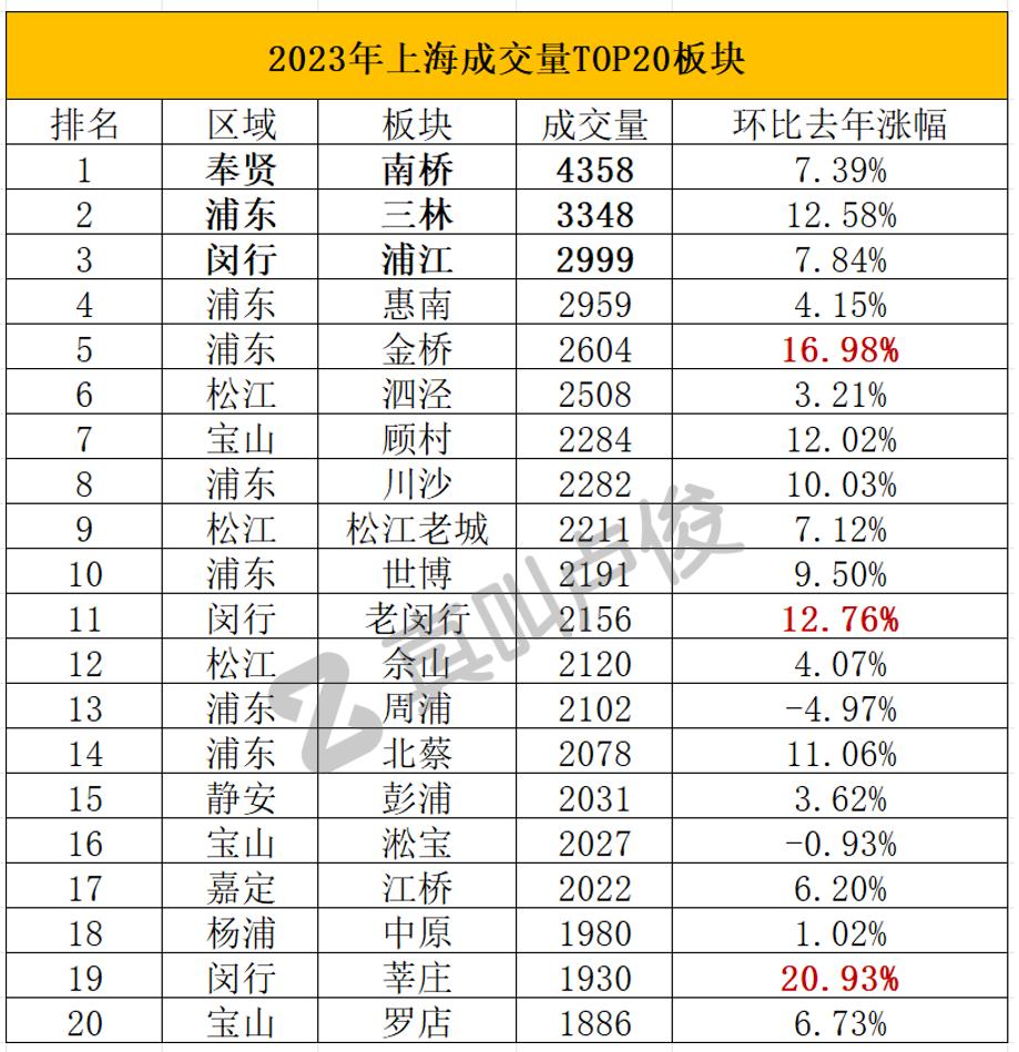 排名前三的为奉贤南桥、浦东三林、闵行浦江,这三个板块,年度成交体量接近三四千套,交易流动性大到可怕 。