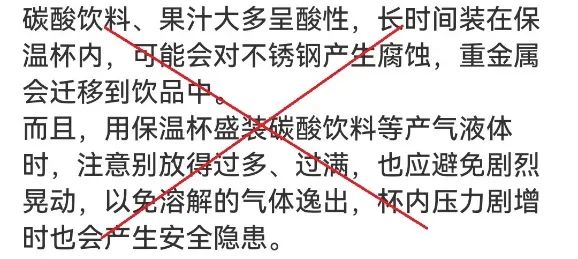 网传禁忌之三:保温杯不宜装碳酸饮料和果汁