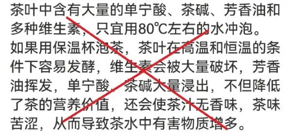 “不能用保温杯泡茶”是广为流传的传言,通常所用的理由是这样的: