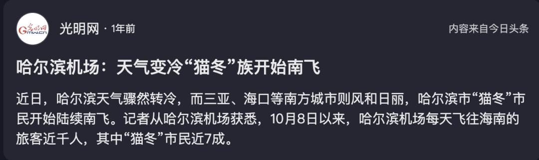 东北人“猫”在海南岛,南方人勇闯哈尔滨。