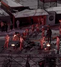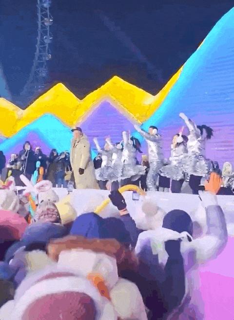 也许是怕取暖的人无聊,还在播放音乐,搭配BGM,鼓励游客舞动身躯,活脱脱一个东北版的篝火晚会。