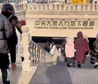 游客说这里是梦幻的冰城,中国人自己的霍格沃滋,他就在马路边演绎什么叫飞马踏冰。