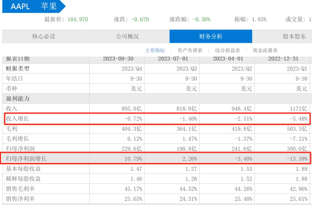 尽管苹果在2023年内股价取得超过40%的涨幅,也难以掩盖苹果业绩的疲软。