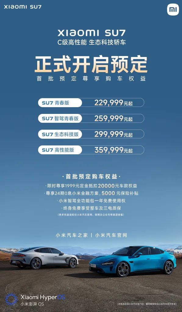 小米又是汽车行业中的「新人」,从官宣到技术发布会,已经过了1000多天,汽车市场竞争激烈,小米汽车的定价一定会十分谨慎。对价格有所保留,也避免了友商的「回击」,SU7才不至于「首发即破发」。