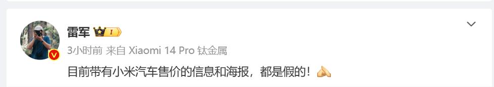 或许是虚假信息满天飞,对小米汽车有不好的影响,小米的高管们都坐不住了。