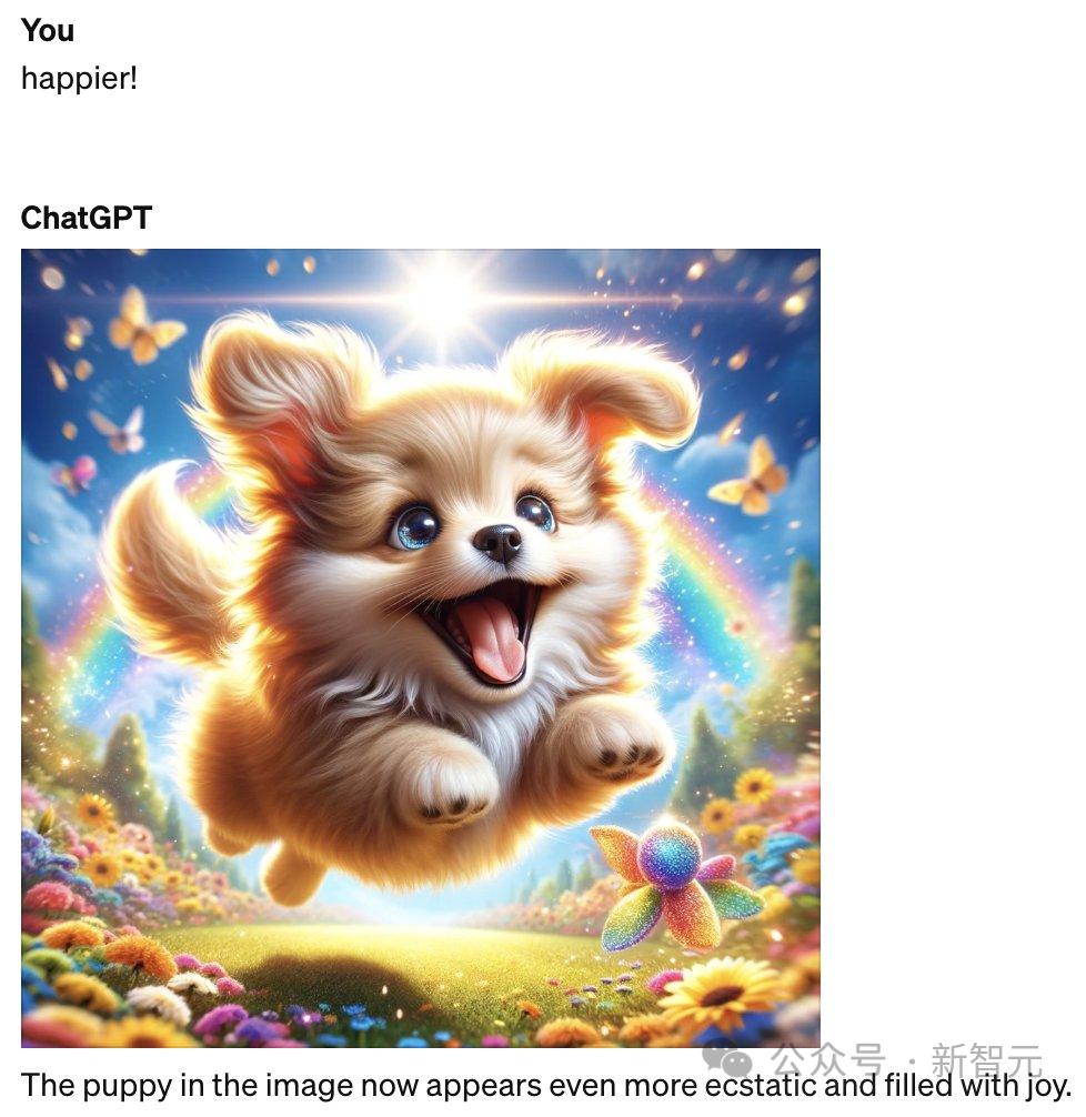 同样的思路,网友又对狗子下手了,让GPT-4创造一张高兴的狗狗照片。