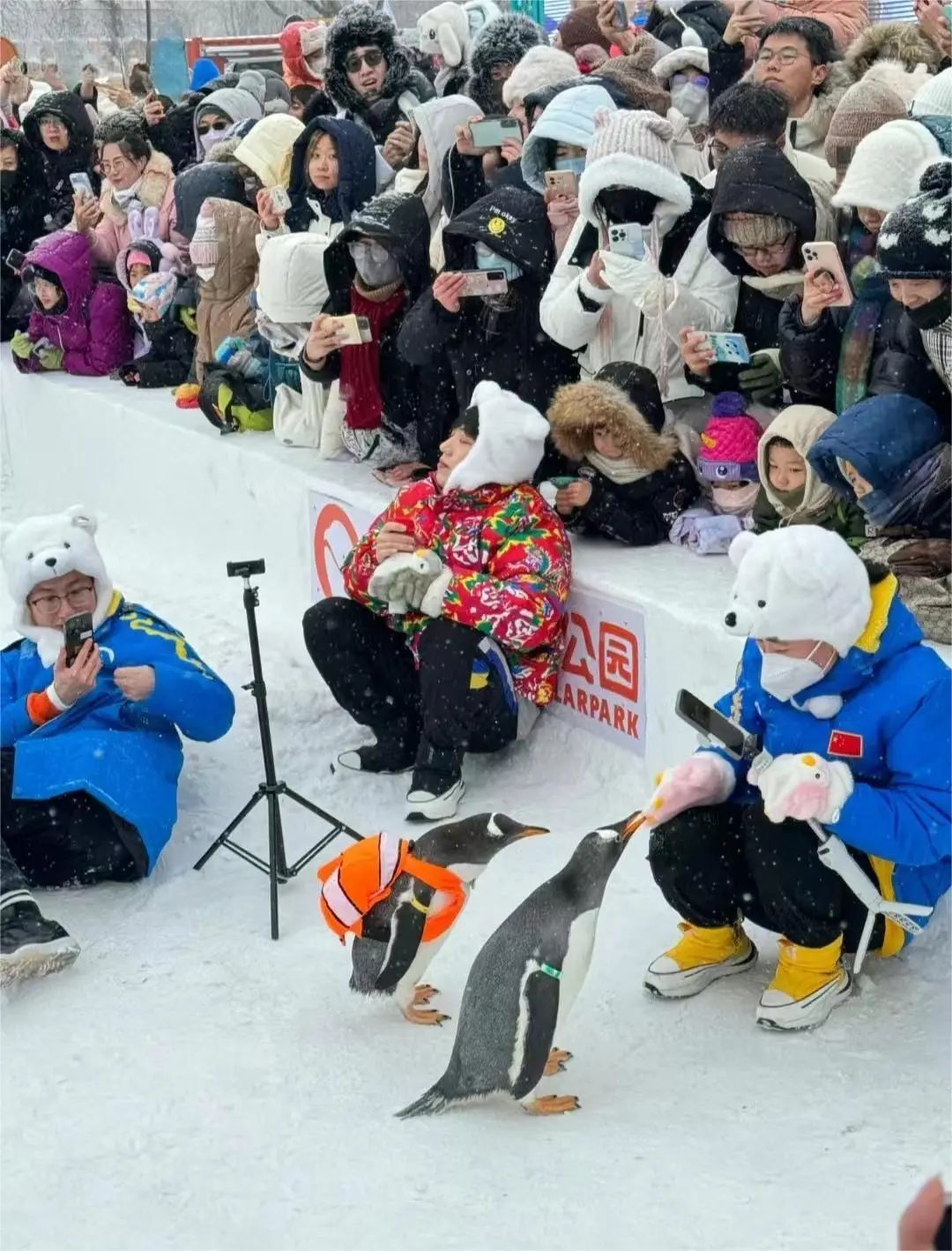 大家很快学会了从身高、穿着和说话声音判断出本地人和外地人的区别:比如他们有着统一的穿搭模式:浅色羽绒服搭配各式可爱的帽子、围巾、手套。