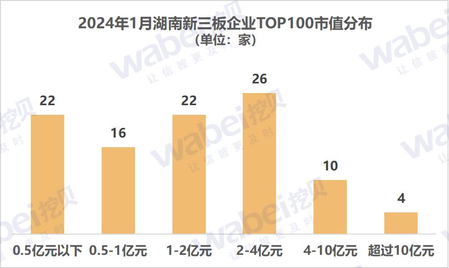 挖贝研究院梳理出2024年1月湖南新三板企业市值TOP100(以下简称:“榜单”或“TOP100”),4家企业市值超过10亿元,13家企业冲击北交所。