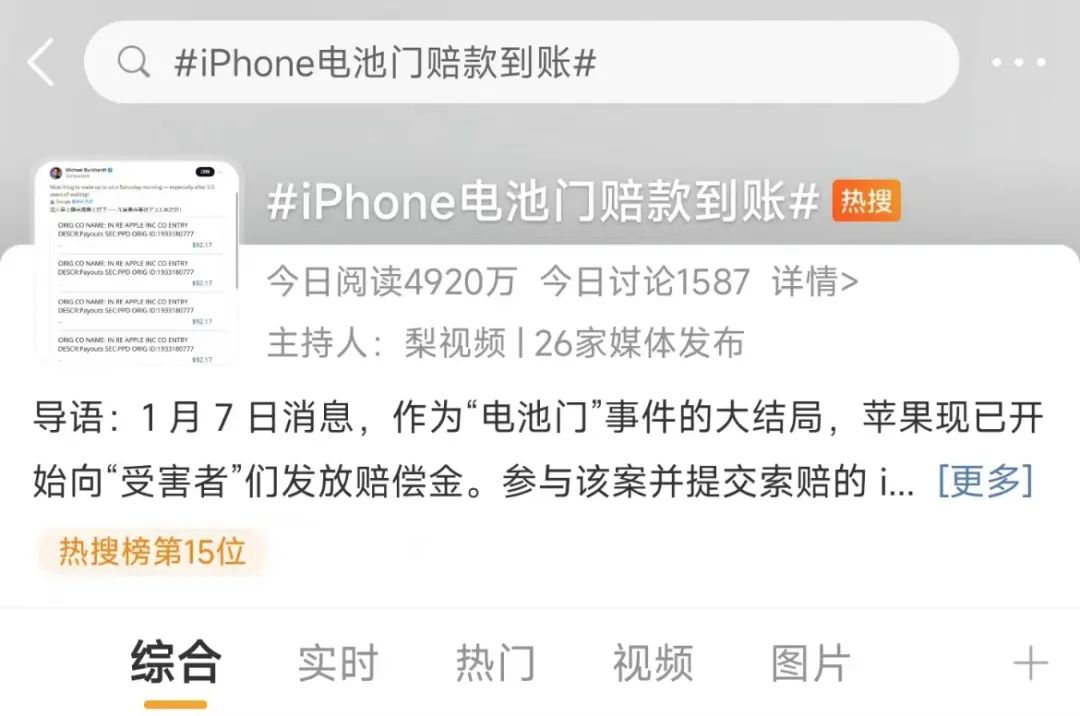 快科技:《网友热议iPhone电池门赔款到账:中国用户对苹果太仁慈》