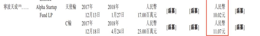 招股书显示,就在这场天使轮融资5天后,阿尔法公社参与了白山云的C轮融资,每股单价已经涨至11.07元/股,涨幅约10%。