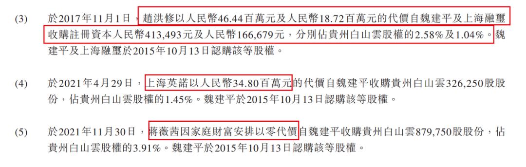 但在2021年11月,蒋薇茜却以零代价自魏建平处收购贵州白山云3.91%股权,招股书给出的解释是“家庭财富安排”,但蒋薇茜与魏建平究竟是何关系,白山云却并未披露。