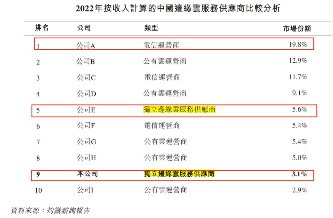 为了造势,白山云将自己放至一个极其细分的领域——独立边缘云。招股书称,根据灼识咨询报告,按2022年总收入计算,白山云是中国第二大独立边缘云服务供应商。