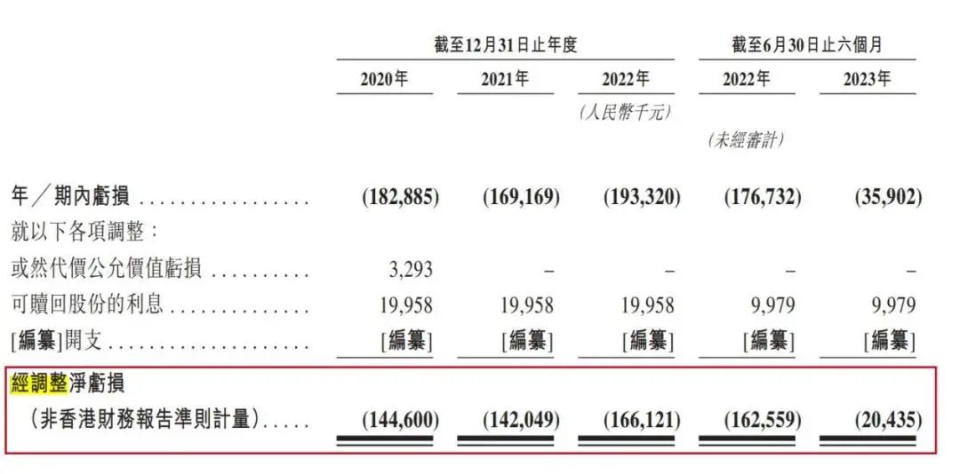 不仅如此,其净利润更是连连亏损。报告期内,公司净利润分别亏损1.83亿元、1.69亿元、1.93亿元及3590.2万元;经调整净亏损分别为1.45亿元、1.42亿元、1.66亿元及2043.5万元。