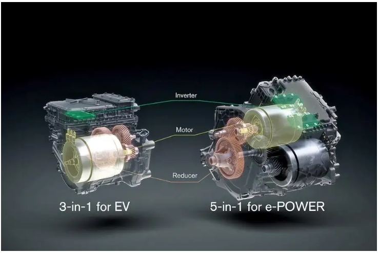 2023年,日产汽车公布名为“多合一(X-in-1)”的电驱化动力总成新技术,使纯电动车型和e-POWER技术的核心组件可以共享同一条生产线。包括应用于纯电动车型的三合一(3-in-1)动力总成原型,以及应用于e-POWER车型的五合一(5-in-1)动力总成原型。到2026年,研发和制造成本将较2019年降低30%。实现e-POWER车型与燃油车型的成本持平。