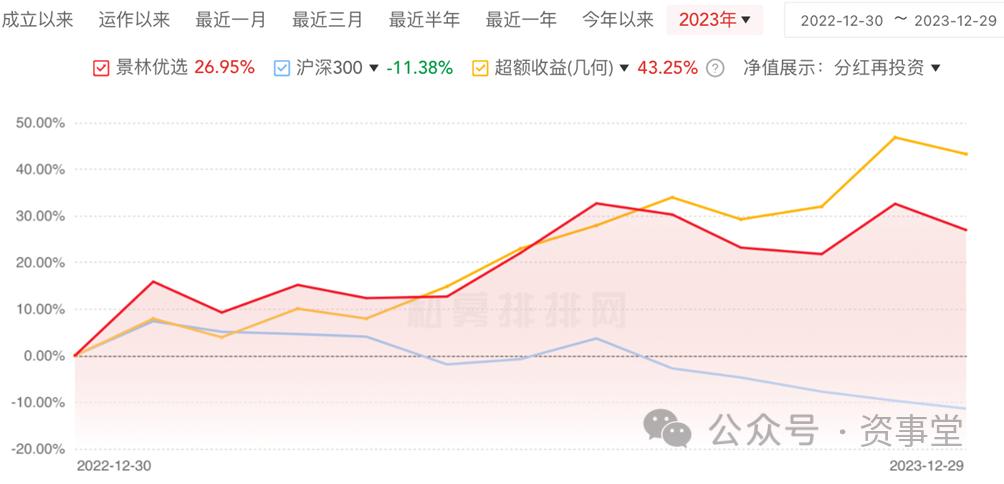 上述说法尚待进一步验证,但景林资产的净值曲线明显超越大部分主动权益同行,且与沪深300指数拉开差距,这或与其此前“一半一半”的设想有很大关系。