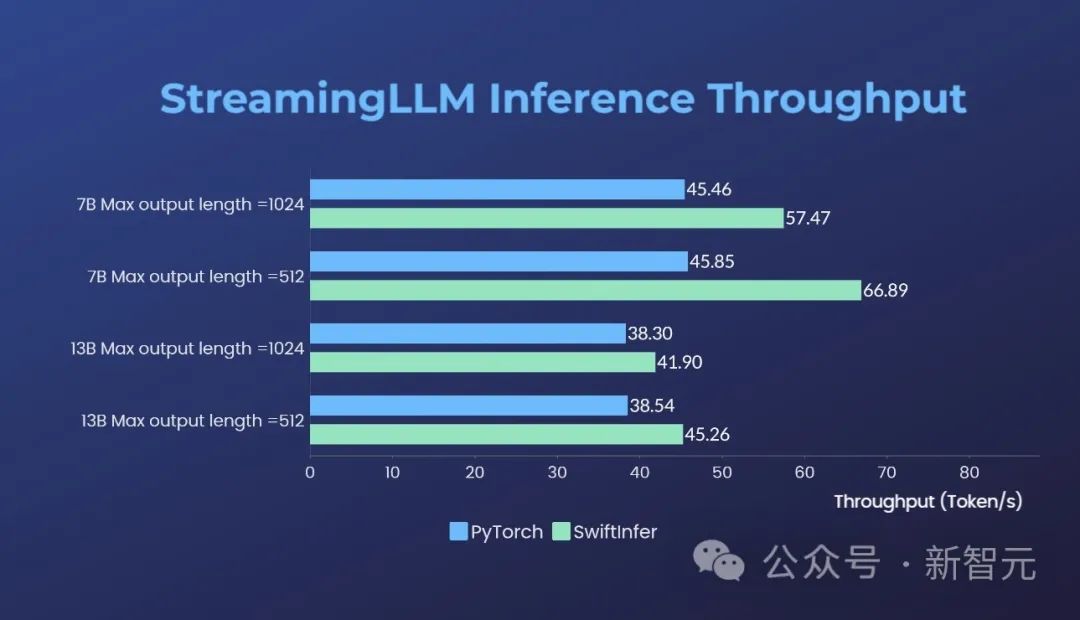Colossal-AI团队发布的SwiftInfer可以进一步提升推理性能,最多带来额外的最多46%的推理吞吐速度提升,为大模型多轮对话推理提供低成本、低延迟、高吞吐的最佳实践。TensorRT-LLM团队也在同期对StreamingLLM进行了类似支持。