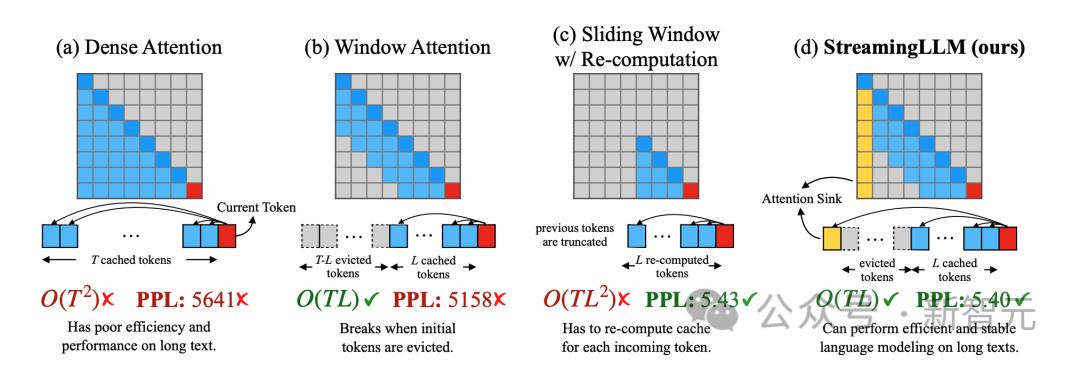当我们使用基于滑动窗口的注意力机制时,一旦这几个token被踢出了窗口,模型的生成效果就会迅速崩溃。但只要一直把这几个token保留在窗口内,模型就能稳定地生成出高质量的文本。