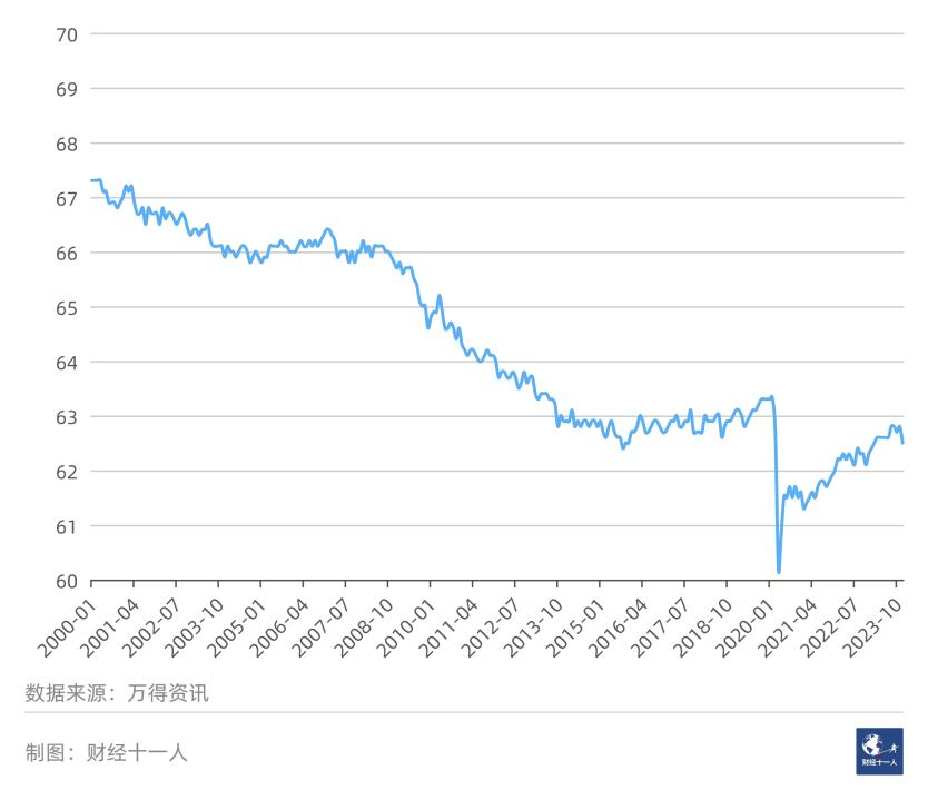 图5: 美国劳动力参与率(%)